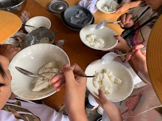 班のみんなでいただきます。「冷たい!」「おいしい!」と大喜びです。
