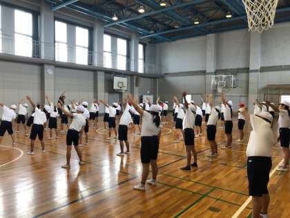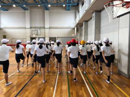 今日は1組と2組の合同で「集団行動」について学習しました。運動会に向けて、全体で動きを合わせることを目標に行いました。