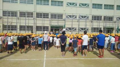 9月がスタートしました。運動会練習に向けて、運動場の石拾いをみんなで協力して行いました。