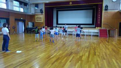 今日から運動会の応援団練習が始まりました。赤組白組に分かれて3・3・7拍子の振り付けを考えました。
