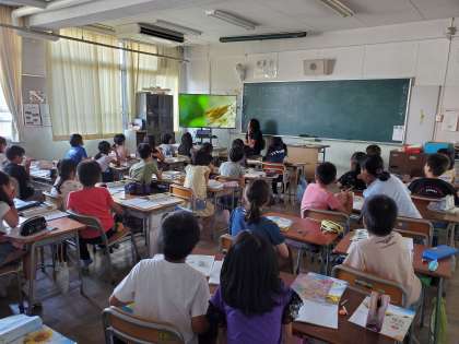 昆虫の体のつくりについて学習しました。昆虫の成長過程をとらえた学習ビデオを見ました。興味津々にビデオを見ながら、1学期に学んだモンシロチョウとの成長の違いについても知りました。また、昆虫とそれ以外の虫の違いについても学びました。
