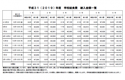 8・9月分の給食費の引き落とし日は、9月10日(火)となっています。本日中に、お振込みいただきますようお願いします。