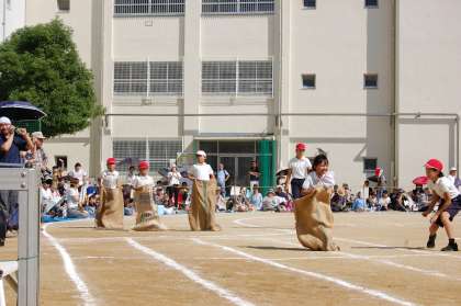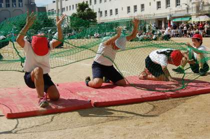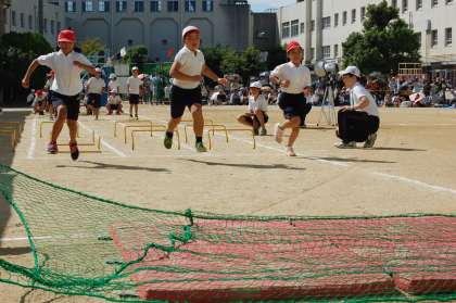 3年生は障害走を行いました。様々な仕掛けを乗り越え、一生懸命ゴールまで走り切りました。