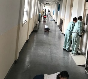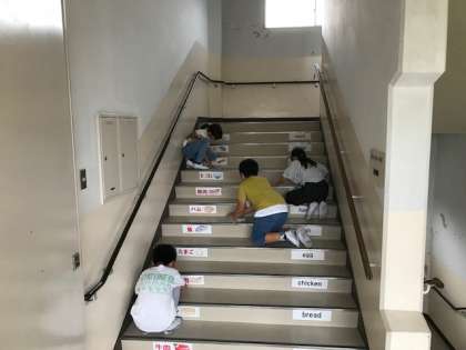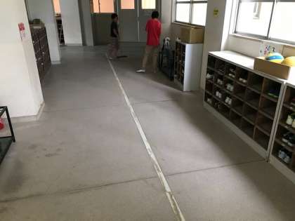 そこで、学校の美化活動を行いました。土ぼこりの多いくつばこ前や、汚れやすい給食室前の階段や廊下を掃除しました。委員会の児童たちがゴシゴシと一生懸命こすってくれたおかげで、掃除場所がピカピカになりました。