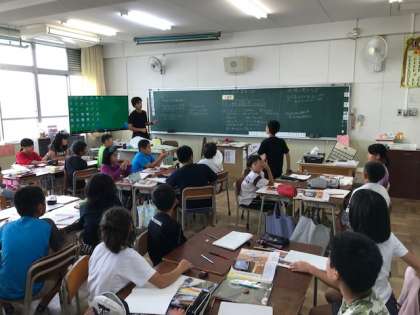 次の時間には、ごみ袋の中に空気を入れたものを壁に押し当てたり、圧力をかけあったりするとどんな感触があるのかを活動をして結果を考察しました。「強い反発を感じた」「押すと形が変わったが、押すのをやめると元に戻った」「強く押し付けたら割れた」などの意見が出ました。