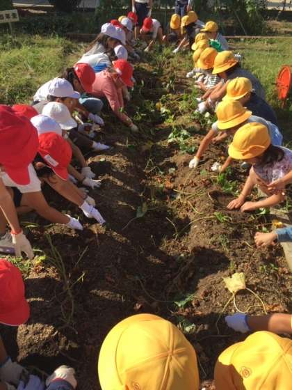 お芋を探している途中の友だちには、先に見つかった子ども達が、一緒にほるのを手伝ったり、ここにあるよと教えたりしていました。