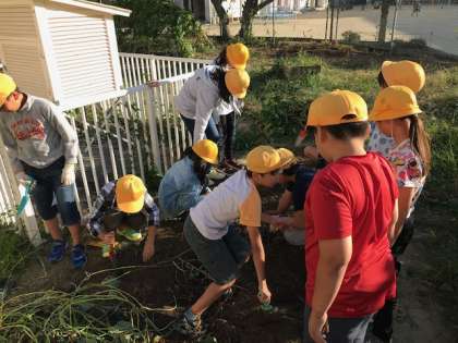 放課後の時間に1学期からずっと育てていたサツマイモをみんなで掘りました。毎日水をあげたり雑草を抜いたりして、大切に育ててきたおかげで、大きなサツマイモがごろごろと出てきました。
