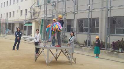 先日の平和集会で、全校児童一人一人が作った折鶴を6年生が千羽鶴にしました。「城北小みんなの平和への願いを込めて、千羽鶴を広島平和記念公園に捧げてきます」と代表児童が誓いました。