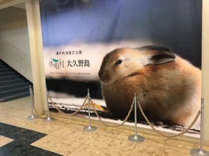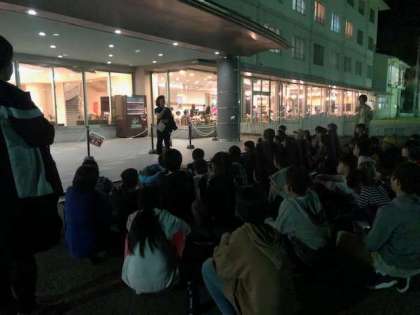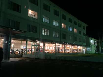 休暇村大久野島に着きました。辺りはすっかり暗くなっています。