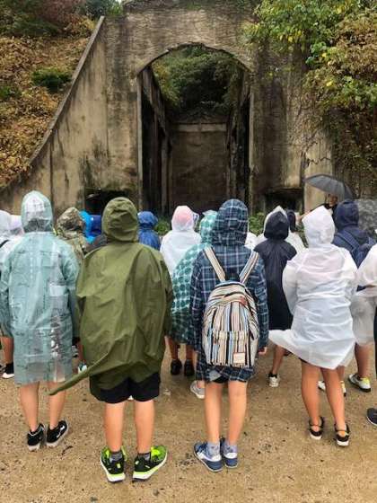 全体活動では、毒ガス資料館と毒ガス製造の施設を見学しました。かつて大久野島は、秘密の島であった歴史を学びました。