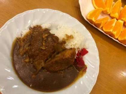 昼食はカレーライスをいただきました。デザートのオレンジを堪能しました。