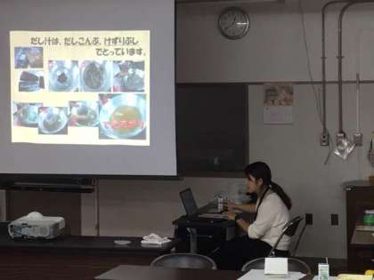 給食を食べながら、映像で城北小学校児童の普段の給食の様子を視聴しました。