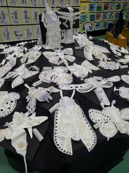 切り絵工作の「切り起こし」「すかし」「かざり」を使って、迫力ある昆虫を創りあげました。