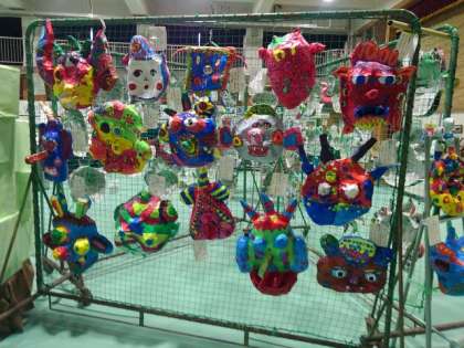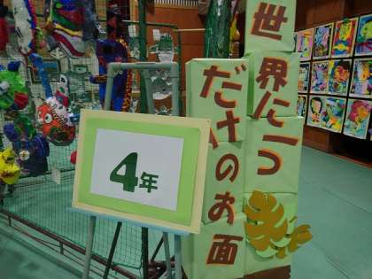 紙とのりで顔の輪郭を作り上げる部分や、お面の模様を考えたり色付けしたりする部分をがんばりました。