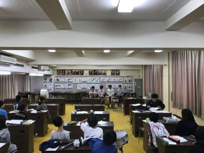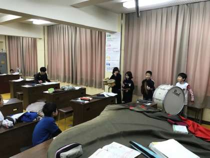 グループごとに「皮がはってある楽器」「金属でできている楽器」「木でできている楽器」を選び、リズムに合わせて合奏をしました。楽器の組み合わせ次第で、音の響きや感じ方が全く違うことを、感じ取ることができました。