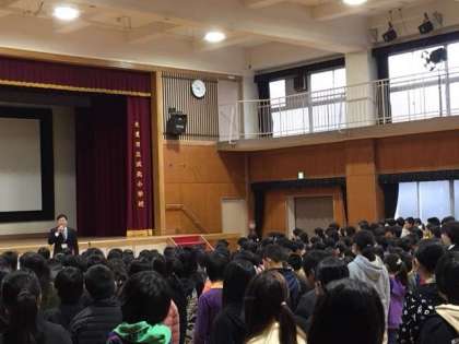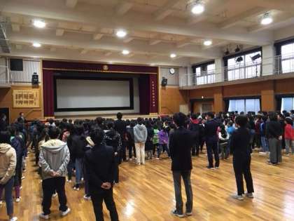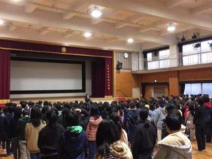 始業式は、校長先生から『今年の目標』についての話がありました。その後、生活指導の先生からお話がありました。最後は、令和2年初めての校歌を斉唱しました。