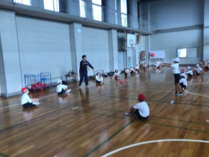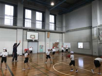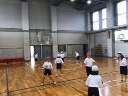 3学期初めの体育の単元は、ポートボールです。まずは、ボールになれるために簡単な体づくり運動を行い、「チェストパス」や「バウンドパス」の練習を行いました。