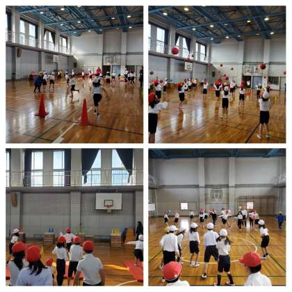 最後は、ドッジボールをしました。ボールを10個使って行うドッジボールに、子どもたちは楽しみながらも、どうしたら勝てるのか考えて工夫しながら取り組むことができていました。