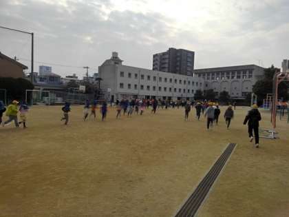 本校では、毎年1月に地震・津波の避難訓練を、赤川幼稚園・生江保育所と合同で行っています。