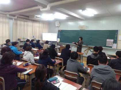 教育委員会指導部の谷口美幸先生に、外国語活動の研修会を行っていただきました。指導のポイントや、様々なチャンツやアクティビティを教えていただきました。