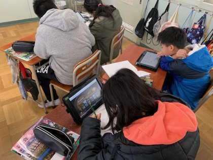 社会科ではくらしを支える政治について学習しています。今日は、文部科学省や外務省といった各省庁がどんなことをしているのかタブレットを使って調べ、それぞれノートにまとめました。