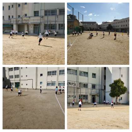 体育では、キックベースボールをしています。これまでにボールの蹴り方や捕り方を練習してきましたが、今日は実践形式での練習を行いました。子どもたちは、攻撃では蹴る方向、守備では守る位置など作戦を練ったりと、チームで協力して取り組む姿が見られました。