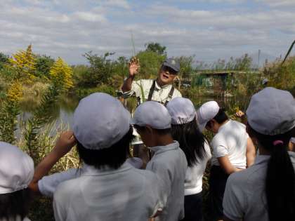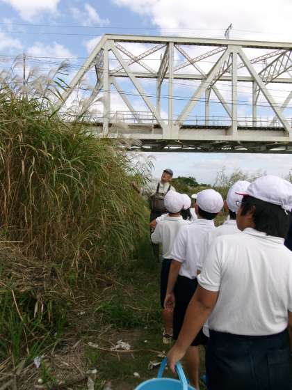 大阪工業大学の先生と4回生の学生さんが草花や魚についてたくさん教えてくださいました。