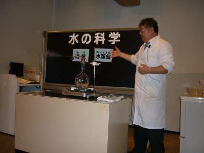 10時からは「水の科学」というサイエンスショーをみました。そこでは、湯気と水蒸気の学習をしました。0度以下の普通の水を凍りの入ったグラスに注げば注ぎ込むだけ、まるで「アナと雪の女王」のように氷の建物のようなものが出来上がり、子どもたちは興味津々の様子でした。