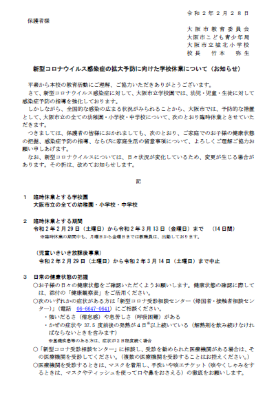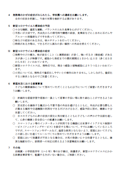 新型コロナウイルス感染症の拡大予防に向けた学校休業について