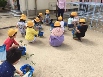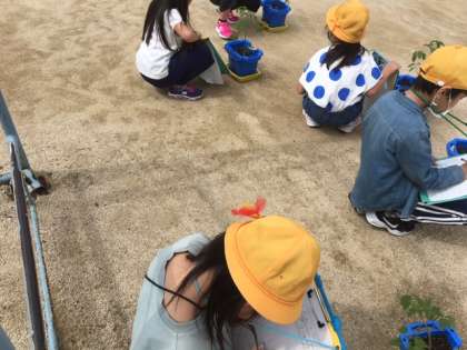 日かげで、苗の形や色、触り心地やにおいも確かめながら記録していました。