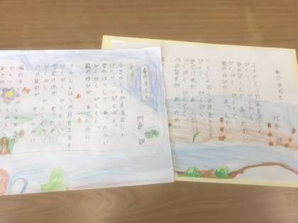 国語の教科書にある詩「春の子ども」の視写を行いました。しっかりと心を込めて書きました。そして、書きながら思い描いた景色を絵に表してみました。