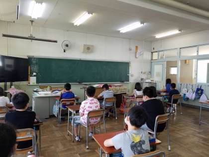 短い時間ではありましたが、どの子も真剣な表情で教室のスピーカーを見つめていました。特に、お話の中の「友だちを傷つけない、それが平和のために自分たちができること」という言葉に大きく頷いていた姿が印象的でした。平和について今一度考えるきっかけになればよいなと思います。
