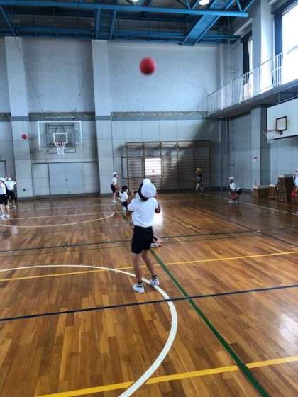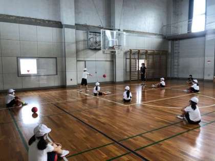 ボール運動をしました。これからの体育の学習に向けて、ボール操作の基本運動を行いました。ボールを転がす、投げる、受けるなど、様々なボール操作をしました。受ける位置や投げ方のコツをつかみ、ボール運動を楽しむことができました。