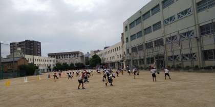 体育では、今日、久しぶりに運動場で活動ができました。ボールを使って、的あてゲームなどを楽しみました。