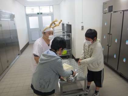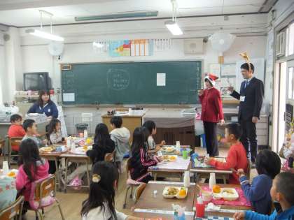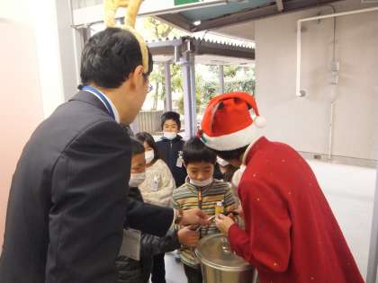今日は、クリスマスイブということで、城北小学校には、サンタさんとトナカイさんがやってきました。みんなとても嬉しそうでした。