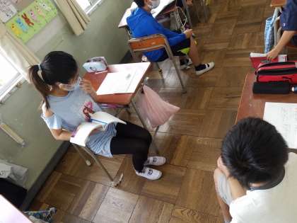 高学年の国語科では、考える根拠を明確にすることをめあてに学習をすすめています。「132ページの13行目から、動物の命を何とも思っていないところは変わっていないと分かります」「132ページの最後の行に、紙くずのようになった顔と書いてあるから、そこははじめと変わりました」などと、教科書の本文を根拠に挙げて意見を述べる姿が見られるようになってきました。