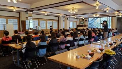 食事係が準備のお手伝いをします。みんなで美味しくいただいて、山登りに備えます。