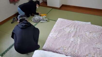 2泊3日の最終日です。荷物整理をし、来たときよりもきれいにするため、隅々まで掃除します。