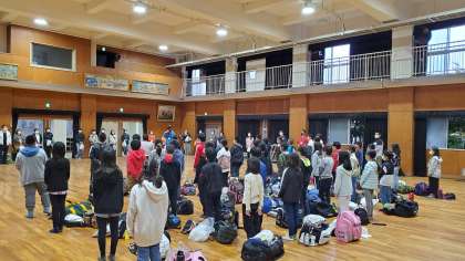 保護者の方も雨の中、お迎えにきていただきありがとうございました。2泊3日、たくさん活動したので疲れていると思います。今日はしっかりと休んでください。そして、この経験を生かし、今後の学校生活もがんばってほしいと思います。
