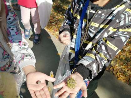 1年生になって初めての校外学習「秋見つけ」に行きました。城北公園で、カエデやイチョウ、ドングリやスズカケなど、秋を見つけて集めました。たくさん見つけることができて、子どもたちはとても満足そうでした。
