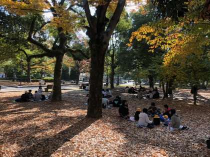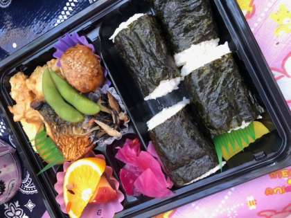 平和の鐘の前辺りで、お昼ごはんです。スタミナ弁当を食べました。