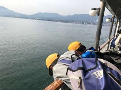 景勝地宮島を堪能してフェリーに乗りこみました。美しくすばらしい島でした。ありがとうございました。