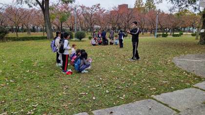 時間内に、班で写真を撮影する場所を決めてきちんと並びます。