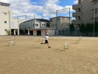 12月に入り、ハードル走に取り組んでいます。児童たちは自分のインターバルに合ったコースを選び、どうすれば速く走れるのか考えながら学習に取り組んでいます。よいフォームで走ることができるように、今後はタブレットも活用しながら練習していきます。