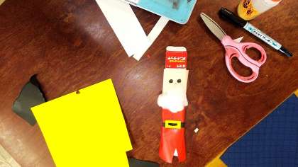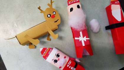 最近の図工では、クリスマスの飾りを作っています。今日は、サンタクロースやトナカイを作りました。