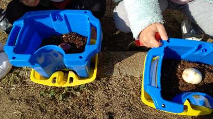 チューリップの球根を植えました。子どもたちは自分で土を鉢に入れるところから挑戦しました。
