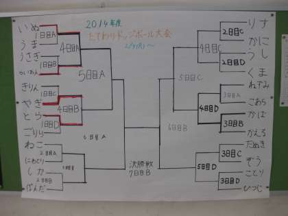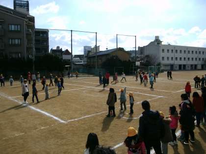 この1年間、同じたてわり班で活動してきた1〜6年生が、たてわりでチームをつくり、トーナメント戦で実施します。スポーツを通して、異学年の交流を図るのがねらいですが、運動委員会の児童が中心となって、準備体操を行ったり、審判となって大会を運営したりと、活躍しています。また、ルールにも工夫をし、みんなが楽しめる機会となっています。