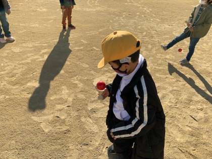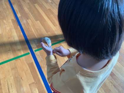 「連続でけん玉できたよ!」「こまの紐をまくのがむずかしいな。」と初めて挑戦する遊びでも、楽しく取り組むことができました。