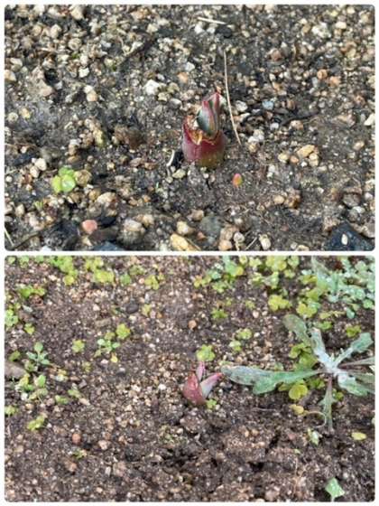 一方、花壇の方では1月に植えたチューリップが早くも芽を出してきました。3月〜4月にはきれいな花が咲く予定なのとても楽しみです。