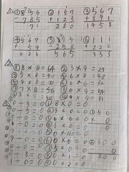 今日は、自主学習についてお話します。今3年生では自主学習に取り組んでいます。3年生でもここまでノートにまとめたり、びっしり計算練習をしたりできるんだと感心しました。今日はそのノートを紹介します。